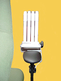 Diese Konstruktion kann auf eine Tischplatte neben der Tastatur des Computers, mit welchem man arbeitet oder auf der Armlehne des Sitzes montiert werden. Das Manual ermöglicht bei verschiedenen Einstellungen der Hand zum Unterarm im Handgelenk von 0 bis 90° differenzierte starke Dehnungen und Entspannungen der Beugemuskulatur der Finger, welche bei isometrischem Mudra-Training für die entsprechende Entspannung im Gehirn sorgen. Bei der Benutzung der Tastatur des Computers in der Kombination mit der Erstellung von Text, Tabellen oder Graphiken am Bildschirm ist eine intensive Zusammenarbeit der Beugemuskulatur der Hand mit den rasanten Muskelbewegungen der Augen nach links und rechts, oben und unten und von links unten nach rechts oben und umgekehrt je nachdem wie das entstehende Bild am Bildschirm dies erfordert. Die Benützung des Mudramanuals in den obligatorischen Erholungspausen von fünf Minuten pro Stunde sorgt für Entspannung des Nervensystems, wenn die Augen sich vom Bildschirm abwenden. Das Mudramanual® enthält nur vier Schwingkörper für die vier Finger der Hand oder fünf, d.h. mit einem zusätzlichen Schwingkörper für den Daumen. Die harmonische Schwingfrequenz ist zwischen 2 bis 6 Hz einstellbar. Mit einem flexiblen Adapter kann das Gerät an der linken oder rechten Armlehne je nach Bedarf angebracht werden.